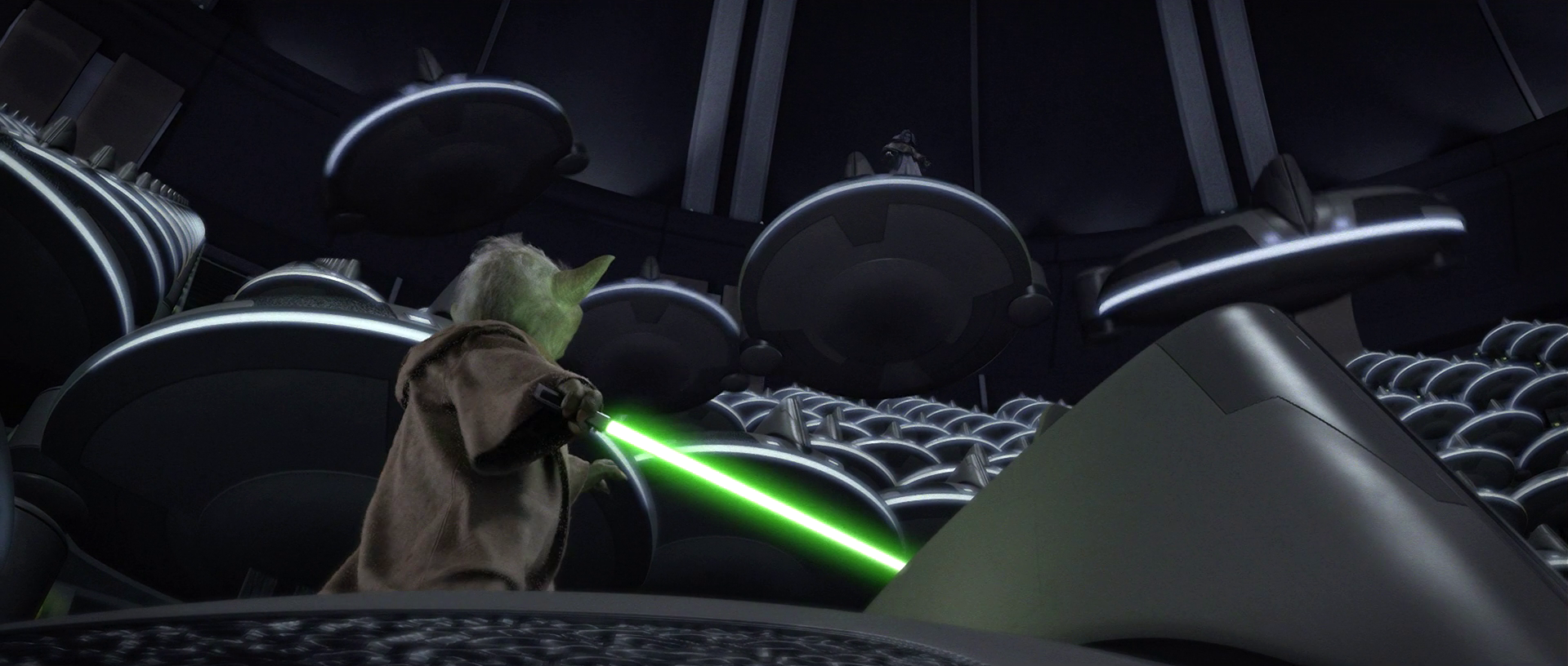 W 19 BBY, zaraz po proklamowaniu Imperium Galaktycznego, Palpatine stoczył pojedynek z mistrzem Yodą. W trakcie walki Sith Mocą podrywał gondole repulsorowe i skierowywał je z olbrzymią prędkością w stronę przeciwnika. Po zakończeniu pojedynku jedna z gondol była wykorzystywana przez komandora Thire'a i podległe mu klony do poszukiwania ciała Jedi.