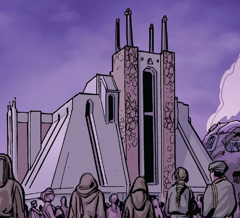 Świątynia na Mathasie była budynkiem postawionym przez Zakon Jedi na Mathasie okolo roku 60 BBY. Jego celem było udzielanie wsparcia emocjonalnego mieszkańcom planety cierpiącym w związku z plagą Niffin. Budowę świątyni nadzorował mistrz Jedi Kez Velaz, który kilka miesięcy później zaginął, a jego miejsce zajął podający się za członka Zakonu oszust imieniem Drooz. Mężczyzna wyciągał od mieszkańców datki w zamian za rzekomą pomoc w dostosowaniu woli Mocy do ich potrzeb. Sprawą zajęli się mistrzyni Cyslin Myr i padawan Mace Windu, którzy obnażyli jego kłamstwa i ujęli mężczyznę.