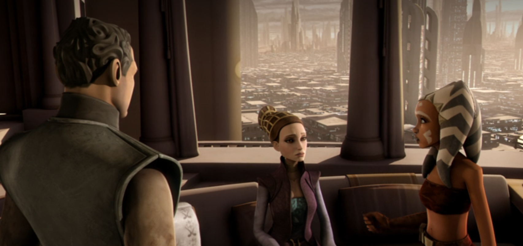Gdy dolecieli na miejsce, Typho wraz ze strażą opuścił pokład. Podczas gdy senator przygotowywała się do wystąpienia, Ahsoka ponownie poprosiła Gregara o możliwość porozmawiania z nią, co też mężczyzna jej umożliwił. Tano przyznała się do pomyłki zeszłej nocy, lecz podtrzymała, że zagrożenie jest aktualne. Typho odparł, iż Padmé powinna skupić się na przygotowaniach do wystąpienia, na co Tano doprecyzowała, że zgodnie z jej kolejną wizją zamach ma wydarzyć się dzisiaj wieczorem w sali plenarnej. Gregar zasugerował więc, aby obejrzała pomieszczenie, w którym odbędzie się konferencja i potwierdziła, czy to ta sama sala, którą widziała w wizji. Udali się na miejsce i padawanka potwierdziła rozpoznanie pomieszczenia, lecz zapytana przez kapitana o kierunek, z którego zaatakuje napastnik, nie umiała sprecyzować.[9]