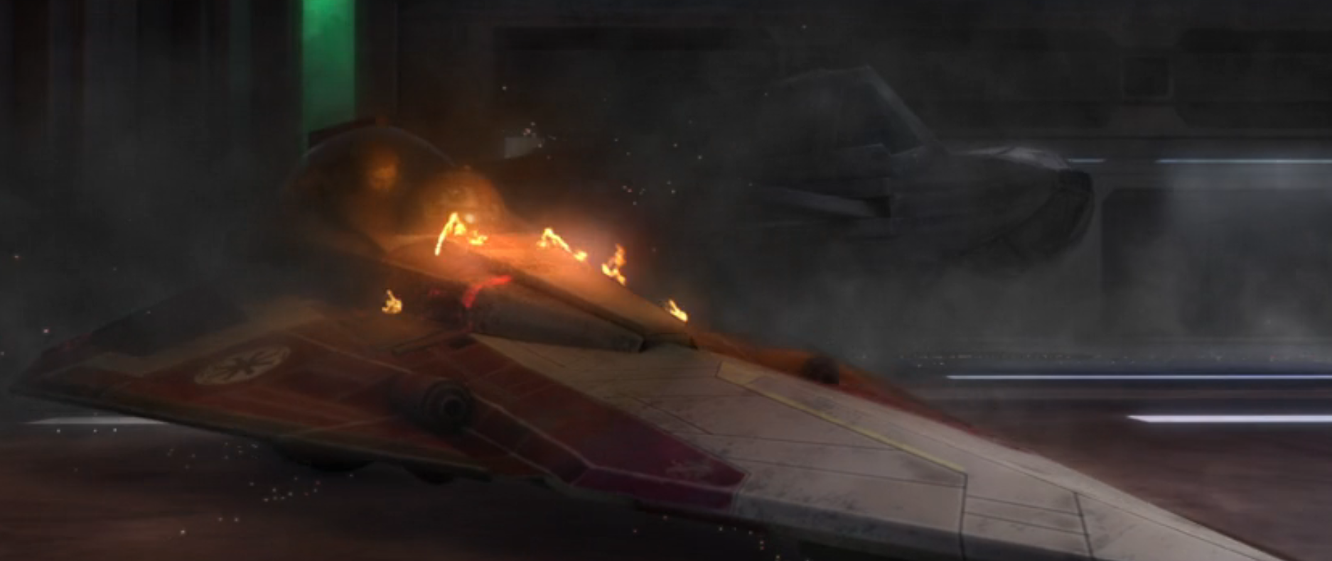 Gdy w wyniku sabotażu Endurance rozbił się na Vanqorze, Anakin Skywalker i Mace Windu ewakuowali się z gwiezdnego niszczyciela na pokładzie mysliwców Delta-7B,[15] po czym polecieli na powierzchnię, aby odszukać we wraku załogę. Na mostku doszło jednak do wybuchu, przez który Jedi utknęli po gruzami, a R2-D2 na polecenie Anakina wrócił do myśliwca, aby polecieć do świątyni Jedi i wezwać pomoc. W pobliżu statku został zaatakowany przze gundarka, który zniszczył jego Aethersprite, zmuszając droida do wykorzystania drugiego z nich, który należał do Windu. Astromechowi udało się uciec przez Slave'em I i dolecieć do celu, dzięki czemu Jedi w porę otrzymali pomoc.[16]