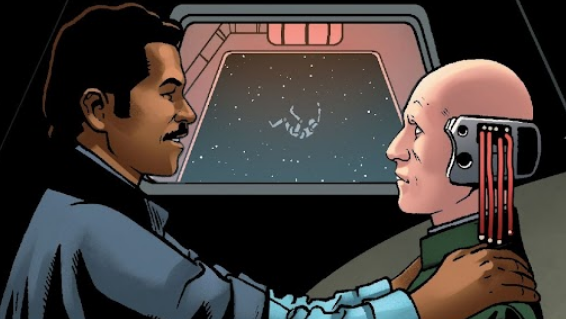 Po dłuższym czasie do Lobota wrócił Lando, który wyjął go ze zbiornika i spytał jak się trzymał. Lobot powiedział, że bywało lepiej, choć chyba da rade wytrzymać, po czym zapytał jak przebiegał plan. Nagle w głośnikach włączył się sygnał ostrzegający o włączeniu się systemów samozniszczenia, co jakimś cudem nie zdziwiło Lobota. Powiedział, że wszystko poszło nie tak jak miało, ale dadzą radę uciec. Niespodziewanie przed nimi pojawił się Aleksin z czerwonym mieczem świetlnym w ręce. Odpalił miecz i powiedział, że raczej wątpił w ich ucieczkę. Lobot zdziwił się, że ten mówił, na co Lando odparł, że także był zaskoczony. Położył Lobota opartego o ścianę i zaczął rozmawiać z przeciwnikiem. Powiedział, że przecież ani on, ani Pavol nie chcieli ich zabić, a jedynie zostać sami na statku. Przeciwnik odparł jednak, że przecież statek miał zaraz wylecieć w powietrze. Calrissian powiedział jednak, że wcale nie musiał, bo jego stara przyjaciółka mogła wyłączyć autodestrukcję. Lobot słysząc to zdziwił się o kogo chodzi, lecz nie doczekał odpowiedzi. Wyjaśnił mu, że nie miał przecież nic do stracenia, bo jeśliby się nie udało, i tak ich zabije. Uświadomił mu, że byli zdani na jego łaskę i zapewnił, że nie wiedział nawet, która strona blastera strzelała, więc jakby mieli go pokonać. Ten zaufał mu i zgasił miecz. Lando wykorzystał to i błyskawicznie wyjął blaster, po czym wystrzelił przeciwnikowi broń z dłoni i zabił go strzałem w klatkę piersiową. Chwycił Lobota i zaczęli dalej iść przed siebie. Ten spytał go, jak to zrobił, skoro nie cierpiał blasterów, na co przyjaciel odparł mu, że blefował. Lobot spytał, czy kłamał przez całe życie, na co ten potwierdził, dodając że ci którzy znali prawdę już nie żyli. Następnie spytał Lobota jak się miewał. Ranny cyborg odpowiedział, że dawał radę, ale implanty naciskały coraz mocniej. Dotarli do pomieszczenia gdzie czekała na nich Chanath Cha. Lobot poznał ją i zdziwił się, że to ona była tą kobietą, o której mówił Lando. Spytała jak się czuł, na co ten odparł, że bywało lepiej, po czym dodał, że miło mu ją było widzieć. Calrissian przerwał im jednak i przypomniał, że statek miał zaraz wybuchnąć. Spytał Chanath gdzie był transport, na co ta powiedziała, że nie było. Lobot zaproponował kapsuły ratunkowe, na co Lando powiedział, że Cha je wyłączyła, a nie posiadał kodu na włączenie ich. Lobot polecił, aby podłączyć go do interfejsu. Kiedy wykonano jego polecenie, stwierdził, że nie dałby rady wyłączyć samozniszczenia, ale mógłby odpalić kapsuły. Lando powiedział, że już myślał, że go stracili, na co ten odparł, że on już był stracony, bo nie dał rady walczyć z implantami i grzebać w systemach statku jednocześnie. Lando wierzył jednak, że da radę. Nagle w głośnikach dało się usłyszeć, że kapsuły były aktywne. Lobot utracił wtedy jednak świadomość. Lando zaniósł go do kapsuły i razem uciekli. Lando obiecał, że go wyleczy, na co odpaliło się nagranie głosowe, gdzie Lobot mówił, że skoro słyszał to nagranie, znaczyło to, że powiedział słowo "wyleczyć". Oznajmił mu, że nie wykluczał takiej opcji, ale nawet jak nie dałby rady, nie będzie zły. Wybory, których dokonał należały do niego, więc nie mógł się za to obwiniać. Powiedział, że miał w sobie moc. Ludzie szli za nim ze swojej chęci. Powiedział mu, aby znalazł kogoś komu by uwierzył i zrobił coś dobrego z talentem, który posiadał.[8]