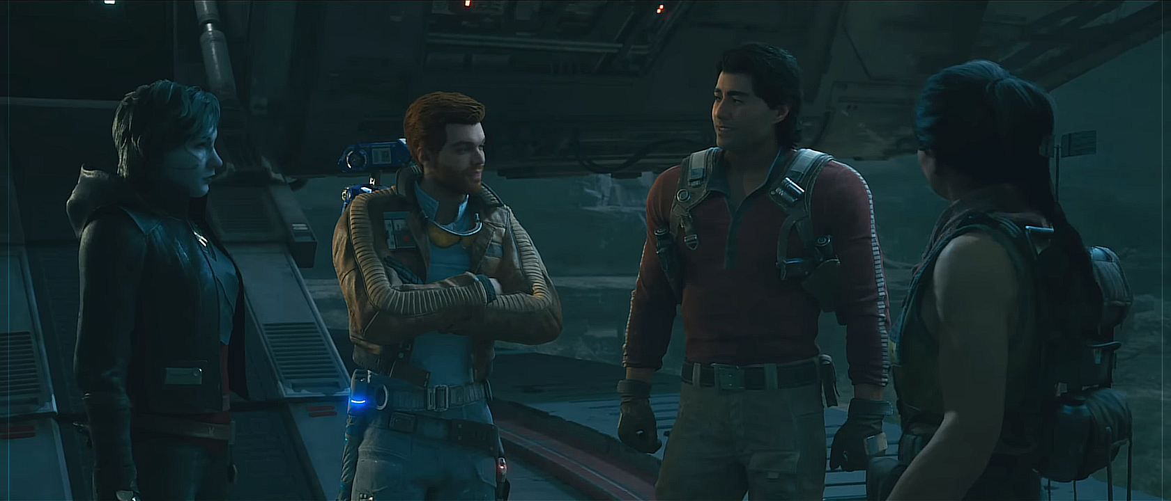 Opis: Załoga Stinger Mantisa omawia plan uratowania ZN-A4. Źródło: Jedi: Ocalały Autor: Respawn Entertainment Licencja: Ta grafika jest chroniona prawem autorskim, wykorzystano ją tu dla ilustracji autonomicznego artykułu (lub artykułów), zgodnie z zasadą dozwolonego użytku, na prawie cytatu (Ustawa o prawie autorskim i prawach pokrewnych, art. 29). |