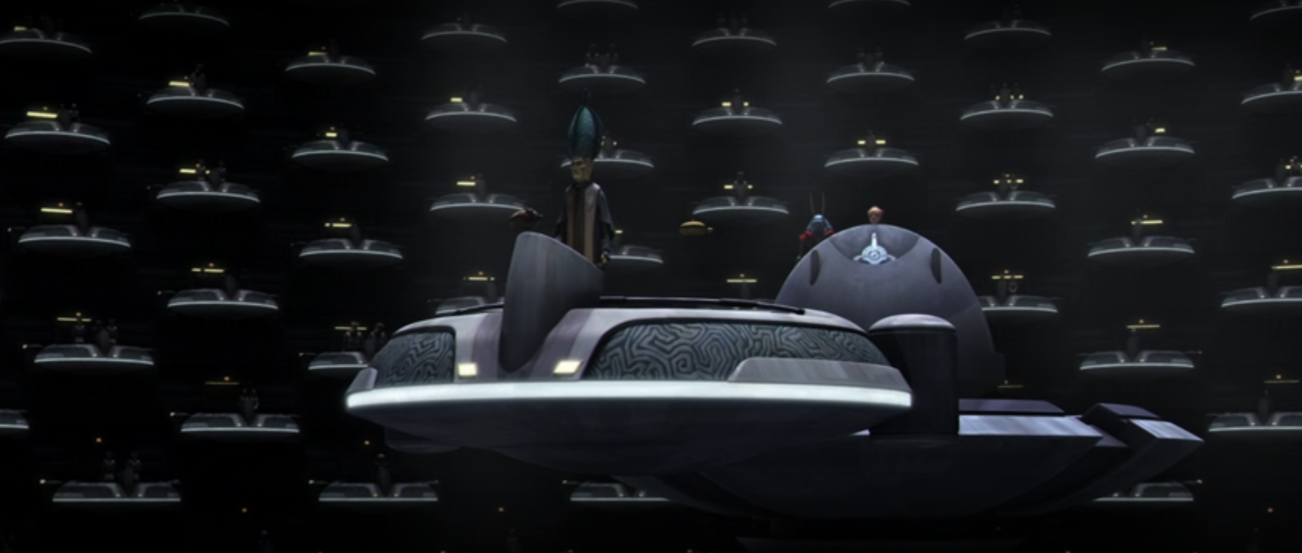 Opis: Lott Dod przemawia w Senacie w sprawie blokady Pantory. Źródło: Autor: Lucasfilm Animation Licencja: Ta grafika jest chroniona prawem autorskim, wykorzystano ją tu dla ilustracji autonomicznego artykułu (lub artykułów), zgodnie z zasadą dozwolonego użytku, na prawie cytatu (Ustawa o prawie autorskim i prawach pokrewnych, art. 29). |