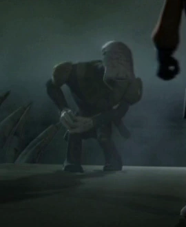 Opis: Morgo. Źródło: Autor: Lucasfilm Animation Licencja: Ta grafika jest chroniona prawem autorskim, wykorzystano ją tu dla ilustracji autonomicznego artykułu (lub artykułów), zgodnie z zasadą dozwolonego użytku, na prawie cytatu (Ustawa o prawie autorskim i prawach pokrewnych, art. 29). |