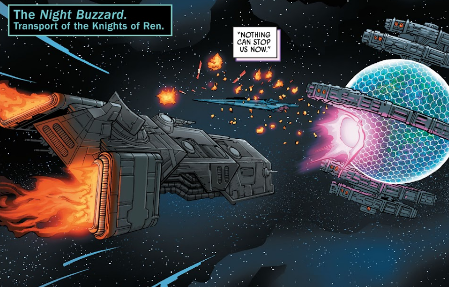 Opis: Night Buzzard nad Amaksińską stacją kosmiczną. Źródło: Ukryte Imperium, część 5 Autor: Steven Cummings Licencja: Ta grafika jest chroniona prawem autorskim, wykorzystano ją tu dla ilustracji autonomicznego artykułu (lub artykułów), zgodnie z zasadą dozwolonego użytku, na prawie cytatu (Ustawa o prawie autorskim i prawach pokrewnych, art. 29). |