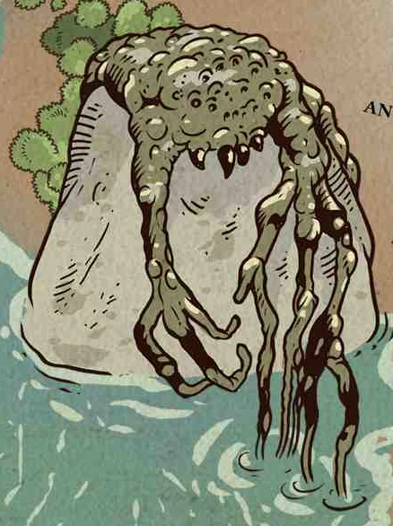 Opis: Rybak bulwiasty. Źródło: Atlas galaktyczny Autor: Tim McDonagh Licencja: Ta grafika jest chroniona prawem autorskim, wykorzystano ją tu dla ilustracji autonomicznego artykułu (lub artykułów), zgodnie z zasadą dozwolonego użytku, na prawie cytatu (Ustawa o prawie autorskim i prawach pokrewnych, art. 29). |