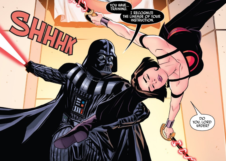 Na pokładzie Vermilliona spotkała się z Ochim, któremu zleciła otrucie gwardzistów imperatora na Coruscant, czym chciała jasno dać do zrozumienia Palpatine'owi, że nie jest bezpieczny. Następnie poprosiła do siebie Deathstick, której nakazała uprowadzenie Cadeliah będącej dziedziczką dwóch istotnych syndykatów: Lamentu Żałobników i Klanu Niepokonanych. Po jej wyjściu porozmawiała z Margo oraz Trinią na temat podjętych kroków i zdradziła im, że rozumie psychologię zabójców, gdyż przed laty współpracowała z kilkoma i zrozumiała, iż motywują się wiarą, nadzieją lub radością. Odparła jednak, że Ochi i Deathstick mają unikalne podejście, co wykorzystała nakłaniając ich na współpracę. Wkrótce obaj najemnicy wykonali swoje misje, a Deathstick dostarczyła jej Cadeliah na pokład Vermilliona. Gdy ta zapytała o dalszy los dziewczynki, liderka Świtu odparła, że nie jest to jej zmartwieniem, po czym przedstawiła się Cadeliah i zapowiedziała, że zostaną dobrymi przyjaciółkami.[14]