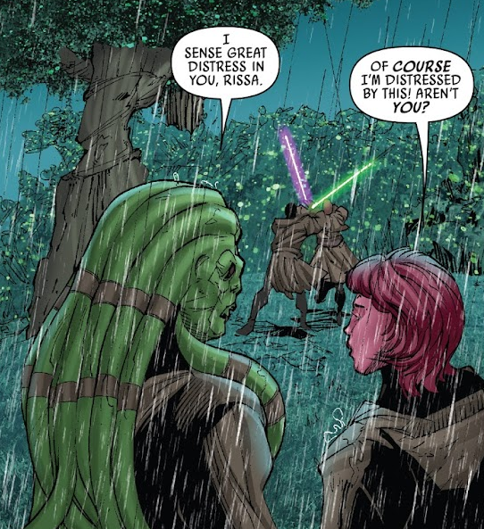 Przyglądali się więc ich walce, podczas której Kit wyczuł zdenerwowanie młodej Jedi. Kobieta wskazała, iż jako członkowie Zakonu nie powinni walczyć między sobą, lecz wspólnie stanąć przeciwko prawdziwemu złu. Fisto zgodził się z częścią jej słów, lecz podkreślił, że jest to swoisty sprawdzian dla postawy Prosseta, który na chwilę obecną oblewa. W trakcie dalszej walki Windu powalił i ogłuszył przeciwnika, którego następnie zdecydował się skuć i zabrać na prom, aby po wszystkim mogła osądzić go Rada Jedi. Po wszystkim Jedi wrócili do tematu ich misji i za sugestią Windu zdecydowali się rozdzielić zadania tak, aby finalnie doprowadzić zarówno do pokonania droidów w bazie jak i kombajnów pracujących na powierzchni.[4] Rozdzielili więc zadania i gdy Fisto frontowym atakiem na bazę odwracał uwagę droidów, Rissa razem z Mace'em przedostała się do środka tajnym wejściem. Gdy Risso zapytała Windu o pewność podjętego planu, ten uznał, że i tak jest zbyt późno, aby teraz go zmienić. Rozdzielili się i Mano zajęła się podłożeniem ładunków wybuchowych pod transportowiec z pozyskanymi roślinami. Po wszystkim dołączyła do Kita, który jak się okazało, pod naporem droidów był bliski poddania się. Mano zaatakowała więc przeciwników z drugiej strony, wyznając mistrzowi, że nie spodziewała się po nim kapitulacji. Nautolanin zażartował, że tylko dawał jej szansę na efektowne wejście, po czym zapytał o jej obecność w pomieszczeniu, mając na uwadze, iż miała zająć się czym innym. Gdy pokonali otaczające ich droidy, kobieta wyjawiła, że chciała pomóc mu po wykonaniu wcześniejszej części swojego zadania. W międzyczasie Windu wyeliminował AD-W4 i tym samym doprowadził ich zadanie do sukcesu. Po wszystkim Jedi powrócili do świątyni Jedi na Coruscant.[5]