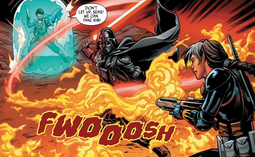 Gdy Archiwistka i Kho Phon Farrus ponownie aktywowały Klatkę Fermata, Sieroty zostały wysłane, aby ochronić je przed [[Anakin Skywalker|Darthem Vaderem], który za sprawą użycia artefaktu wyczuł impuls w Mocy. Po dotarciu na miejsce wyszły na spotkanie Mrocznemu Lordowi Sithów[6] i pod wodzą Chanath stanęły do walki. Gdy Cha rzuciła w przeciwnika ładunkiem kwasu, który zaczął topić jego zbroję, cyborg w odpowiedzi zaatakował je pchnięciem Mocą, po czym wszedł do pobliskiego zbiornika wodnego, aby pozbyć się substancji z pancerza. Kobiety wykorzystały więc chwilę jego nieobecności do zebrania Archiwistki i Kho, lecz pierwsza z nich zaprotestowała przeciwko uciekaniu bez Klatki, która w jej ocenie była kluczowym elementem planu Qi'ry. Gdy Ladybright sięgnęła po urządzenie, z wody zaczął wychodzić Vader, na co Chanath zdecydowała się stawić mu czoła u boku Sear, podczas gdy reszta Sierot miała zająć się eskortowaniem kobiet w bezpieczne miejsce. Imara pożegnała się z nią mówiąc, że niesamowicie było z nią współpracować, co potwierdziła także Sear. Liderka grupy sprzeciwiła się jednak skazywaniu ich walki na porażkę i odparła, że tak łatwo nie odpuści. Gdy doszło do starcia, Sear zaatakowała Vadera miotaczem ognia, lecz ten użył na niej mocnego pchnięcia Mocą, przez co uderzyła w pobliską instalację i zginęła.[1]
