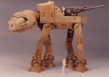 - AT-IC był jednym z pojazdów stworzonych przez firmę Kenner, które miały zostać włączone w 1986 roku do nowej linii zabawek. Miała ona kontynuować sukces serii, powstałej w 1983 roku po premierze filmu Powrót Jedi. Wówczas zespół projektowy Kennera opracował wiele prototypowych modeli zabawek i tak narodziła się koncepcja AT-IC. Projektanci zastąpili dużą część kadłuba AT-AT i zamienili go na wielkie działo - w ten sposób powstał model mobilnego działa obronnego, które według opisu było "ciężko uzbrojonym AT-AT, wykorzystywanym wyłącznie w strategicznych imperialnych miejscach". Ostatecznie jednak Lucasfilm Ltd. odrzucił propozycję firmy Kenner, co spowodowało, że AT-IC stał się pojazdem niekanonicznym[2]. Dopiero w 2004 roku w przewodniku The New Essential Guide to Weapons and Technology AT-IC został oficjalnie włączony do kanonu[3].