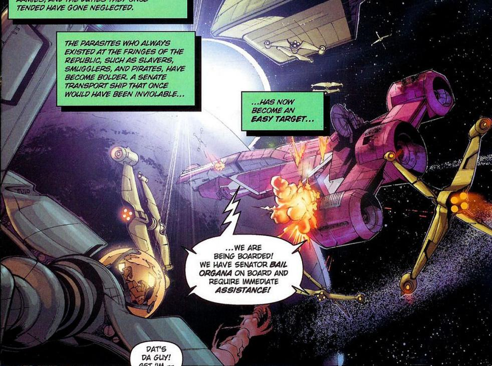 Około szesnastego miesiąca po starciu na Geonosis Republika Galaktyczna traciła swoja przewagę w wojnie. Jedi byli zajęci walką na froncie, a siły republikańskie były rozproszone z powodu intensywnych walk na licznych światach. Z tego powodu ochrona pojedynczych statków dyplomatycznych była znacznie osłabiona, podczas gdy zuchwałość piratów rosła.