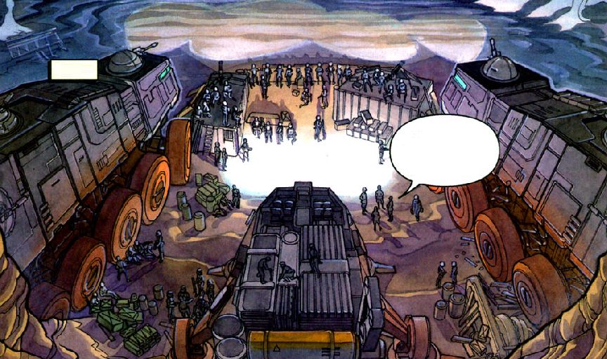 Górnicy zostali zaatakowani z zaskoczenia i nie zdążyli powiadomić garnizonu o ataku. Po jakimś czasie dowództwo zaniepokojone brakiem sygnału od kolonistów zdecydowało się wysłać pomoc. Skompletowano kolumnę, w skład której weszła kompania piechoty szturmowców, wraz z towarzyszącym oddziałem technicznym. Zaopatrzenie dla kolonistów było wiezione na transportowej wersji maszyny kroczącej All Terrain Tactical Enforcer. To na niej usadowiło się też dowództwo kolumny, z generałem Zieringiem na czele. Całości dopełniały dwa ciężkie transportowce typu Juggernaut. W trakcie podróży wokół pojazdów stale szedł przynajmniej jeden pluton piechoty, który zabezpieczał obie strony kolumny. Po pewnym czasie oddział wszedł w gęstą dżunglę. Rejon ten pozbawiony był jakichkolwiek dróg, kolumna była więc zmuszona poruszać się wzdłuż strumyka, w pobliżu którego teren był nieco bardziej wyrównany. Jednak ogromne transportowce z trudem radziły sobie w tym terenie i przynajmniej raz piechota musiała pomóc załodze jednego z Juggernautów, który zagrzebał się w błocie. Mimo tych kłopotów podróż była kontynuowana.