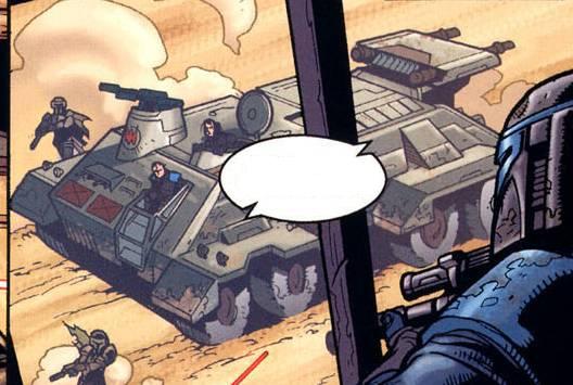 Po tym jak Tor Vizsla wraz ze swymi żołnierzami rozprawili się z frakcją prawdziwych Mandalorian, przybyli oni do jednego z miasteczek na planecie, między innymi używając właśnie tego pojazdu. Okazało się jednak, że mający być martwymi Jaster Mereel i jego Mandalorianie zastawili na nich pułapkę. Dzięki działaniom kilkuletniego Jango Fetta, który podłożył pod pojazdem bombę, został on zniszczony a znajdujący się wewnątrz Tor doznał poparzeń twarzy.