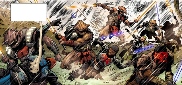 Kiedy Bohater dotarł na miejsce Drapieżcy atakowali go jednak nie udało im się go powstrzymać. W końcu Bohater stanął przed obliczem nietypowego Drapieżcy, który potrafił mówić w basicu i posługiwać się Mocą. Wraz ze swoimi wojownikami zaatakował on Bohatera, ale po pojedynku padł martwy z rąk Bohatera. Ostatecznie udało się wypędzić Drapieżców z ruin. Kiedy Bohater ponownie przybył do Kalikori ukazało się, ze Twi'lekowie odkryli położenie bazy Drapieżców, która była jednak strzeżona przez pole siłowe. Wyłączeniem pola zajął się Bohater Tythonu, a Orgus poszedł do centrum dowodzenia Drapieżców by znaleźć jakieś dodatkowe informacje. Orgus odnalazł tam informacje o pozostałych bazach i rozpoczął przeszukiwanie ich w poszukiwaniu swojego byłego ucznia. W końcu udało się go namierzyć, pokonać i sprowadzić z powrotem na jasną stronę. [3]