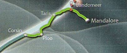 Droga Mandaloriańska była szlakiem nadprzestrzennym którego jeden koniec znajdował się w Wewnętrznych Rubieżach, natomiast drugi na Zewnętrznych Rubieżach. Szlak przechodził oczywiście także przez leżące miedzy nimi Środkowe Rubieże, łącząc tym samym planety Corsin, Ploo, Taris i Mandalorę.