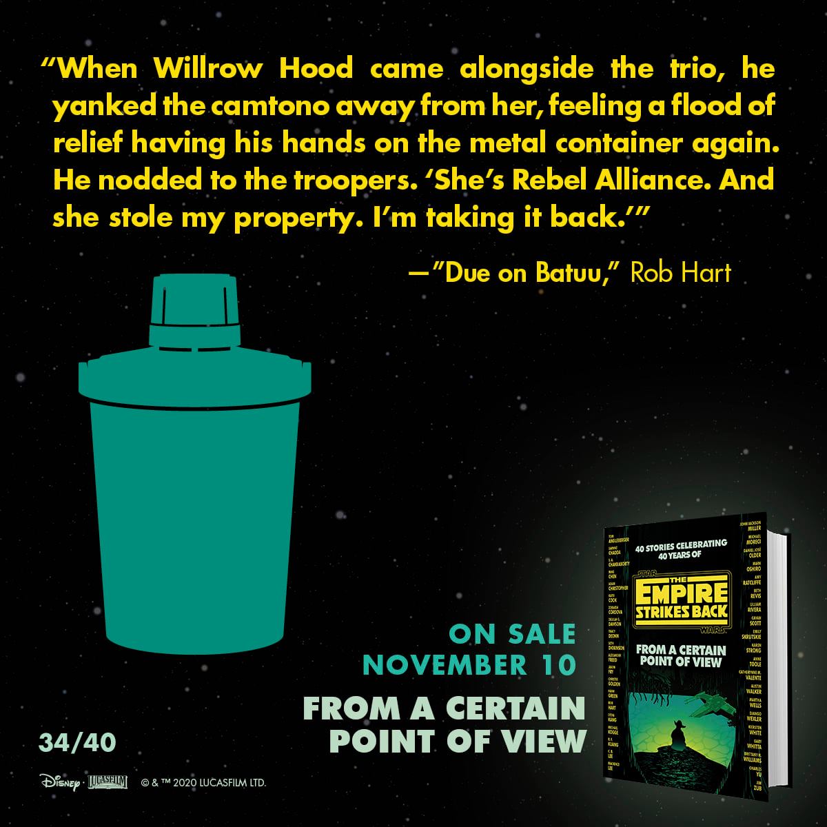 40 authors, 40 stories. 40 social cards revealing the stories and characters for "From a Certain Point of View: The Empire Strikes Back." na profilu Star Wars Books na Facebooku