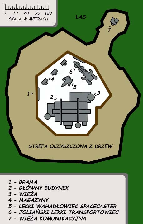 Stacja składała się z głównego budynku, masztu telekomunikacyjnego, magazynów oraz wysokiego muru otaczającego cały kompleks. Posiadała mnóstwo sprzętu do nasłuchu i obserwacji. Była w pełni samowystarczalna, gdyż głęboko pod nią znajdowały się źródła wody pitnej, a na jej terenie uprawiano rośliny nadające się do przetworzenia na jedzenie. Stacja posiadała 2 statki kosmiczne: archaiczny (jak na tamte czasy) wahadłowiec Spacecaster i joliański frachtowiec, praktycznie nie nadający się do latania.