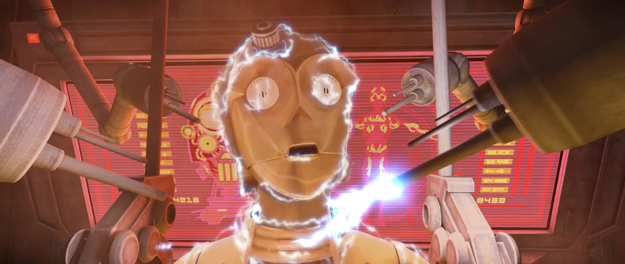 Łowcy udali się do swojej kryjówki, gdzie z pomocą droida hutniczego serii 8D, J0-N0, przystąpili do torturowania C-3PO czym zamierzali skłonić go do udostępnienia jego zasobów pamięci. Wraz z upływem czasu, Bane robił się niecierpliwy, gdyż nie uzyskiwał pożądanych rezultatów. W końcu, J0-N0 poinformował go, iż protokolant był dla nich bezużyteczny, gdyż w jego pamięci nie znajdowały się żadne przydatne informacje. Słowa te dotknęły Threepio, który oznajmił, iż biegle władał ponad sześcioma milionami form komunikacji. W swoim potoku słów dodał też, iż wszystkie techniczne sprawy znajdowały się w pamięci R2-D2. Słysząc to, Bane polecił Todo i HELIOSOWI, aby odszukali astromecha, a następnie dostarczyli do ich siedziby.[4]