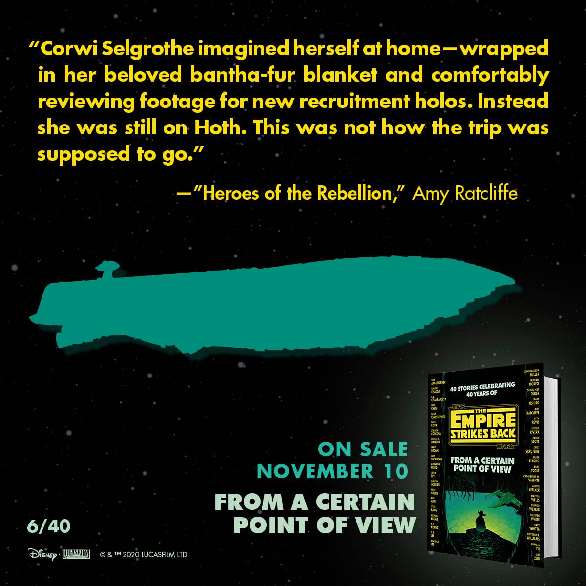 40 authors, 40 stories. 40 social cards revealing the stories and characters for "From a Certain Point of View: The Empire Strikes Back." na profilu Star Wars Books na Facebooku
