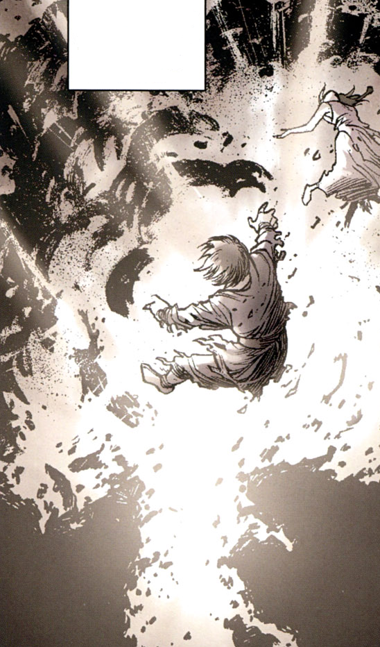 Cały czas maszerując, znaleźli się w dużym pomieszczeniu gdzie spotkali Iaclyna, który na nich oczekiwał. Na jego widok, imperialny wymierzył do niego z blastera i rozkazał mu się poddać. Widząc to, Elli przypomniała, że nie pozwoli mu go skrzywdzić, co Stark skomentował z sarkazmem, a następnie uruchomił znajdujące się w sali droidy i polecił im postępować według protokołu piątego i zabić Jahana. Wtedy okazało się czym był żelazne zaćmienie - wirusem, który umożliwiał całkowite kontrolowanie wszystkich rodzajów droidów. Zgodnie z wydaną maszynom komendą, otoczyły one agenta i rozpoczęły z nim walkę. Mężczyzna nie poddawał się ich przewadze liczebnej i stawiał im czoła do chwili, gdy te przygwoździły go do ziemi, gotowe do zadania ostatecznego ciosu. Wtedy wstawiła się za nim Elli, która poprosiła Iaclyna by odwołał swe sługi. Stark posłuchał siostry i polecił droidom by oszczędziły Jahana. W czasie gdy dochodził do siebie, rodzeństwo rozpoczęło rozmowę, w której Elli dowiedziała się, że była przyrodnią siostrą Iaclyna i że ten starał się ją chronić przez całe życie przed swoim ojcem. Starkówna nie rozumiała tych słów, gdyż myślała, że Iaco zmarł, lecz wtedy, nieoczekiwanie wyszedł on z cienia i zabił Iaclyna. Wydarzenie to wstrząsnęło Elli oraz spowodowało, że Cross zaczął czołgać się w stronę metalowej rurki, by w razie konieczności jej użyć. Najstarszy ze Starków okazał się być cyborgiem, który wytłumaczył obecnym powód zabicia syna, po czym polecił droidom, które wciąż były obecne w sali by zabiły jego córkę. Słysząc jego słowa, Jahan zaatakował maszyny, po czym polecił towarzyszce by rozpoczęła ucieczkę i ruszyła w stronę najbliższych drzwi.[1]
