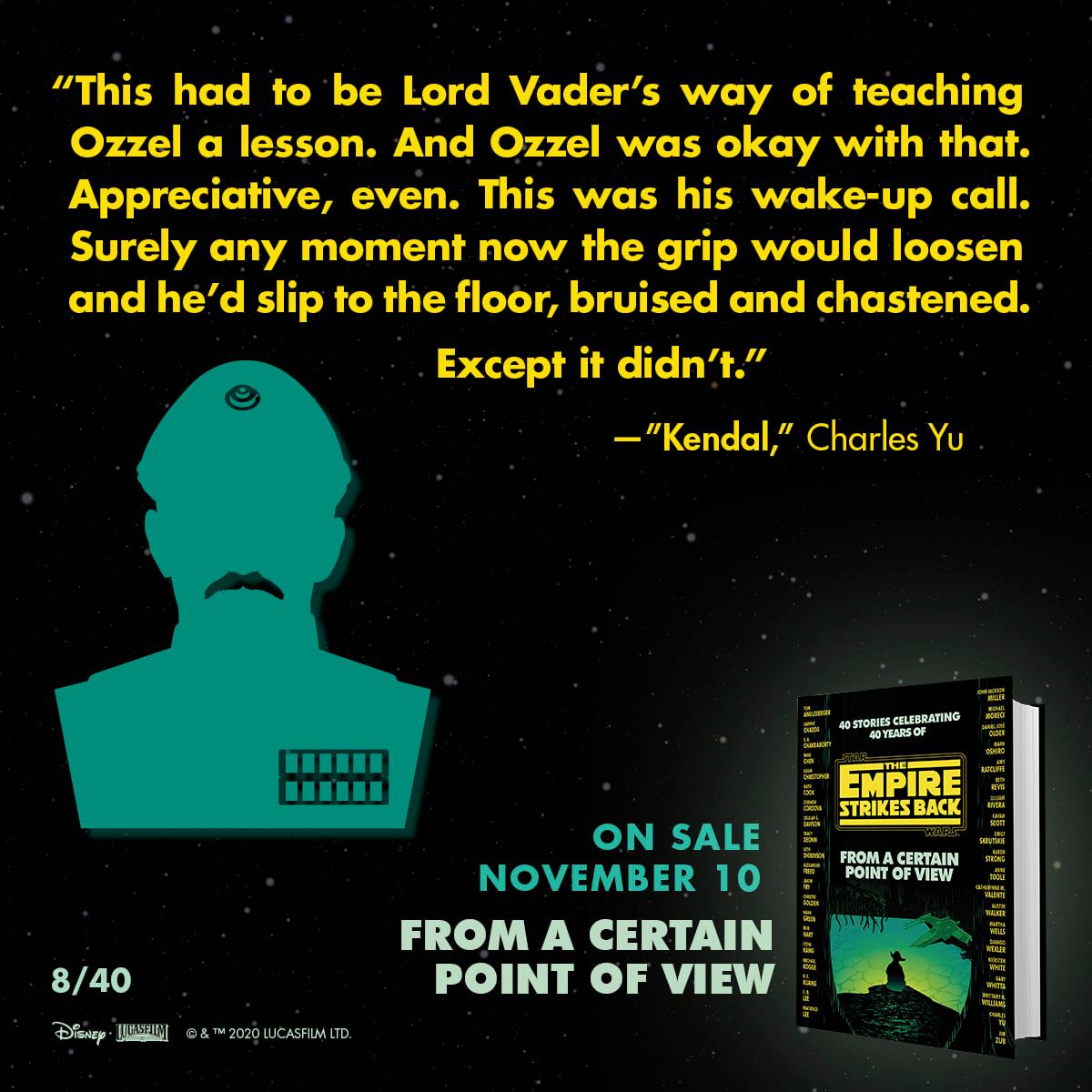 40 authors, 40 stories. 40 social cards revealing the stories and characters for "From a Certain Point of View: The Empire Strikes Back." na profilu Star Wars Books na Facebooku