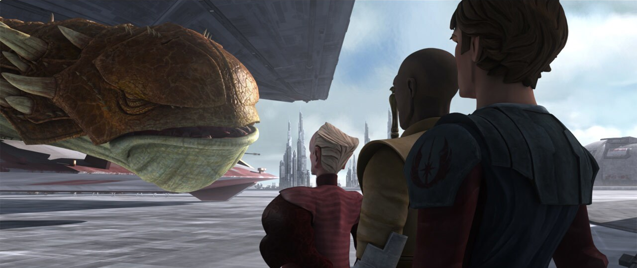 Windu i Yoda byli także obecni na lądowisku, gdy łowczyni nagród Sugi przyleciała z Wasskah, aby przekazać Jedi uwolnionych padawanów, których odbili od trandoshańskich myśliwych.[35]