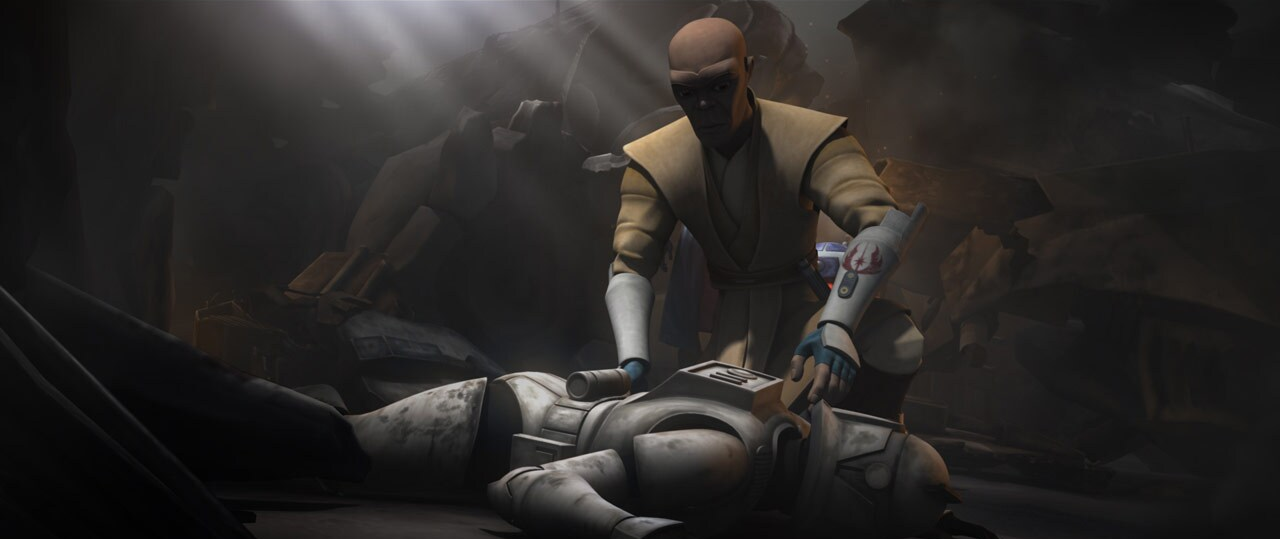 Gdy Mace doszedł do siebie, spróbował użyć Mocy do zrzucenia z siebie gruzów, lecz okazało się to zbyt trudne ze względu na niestabilną konstrukcję wraku. Anakin poinformował go o zadaniu, które zlecił astromechowi, a kolejne chwile spędzone pod przykryciem wywołały u nich obu wątpliwość co do wiary w droida. Wkrótce dostrzegli na niebie wymianę ognia między jednym z ich myśliwców, w domyśle kierowanym przez R2, a Slave'em I należącym do Boby, co oznaczało kolejne komplikacje. Mace zmuszony czekać przyciągnął do siebie hełm, w którym podłożony został ładunek i potwierdził, że ten należał do Jango, którego zabił na Geonosis. Wyjaśnił Anakinowi, że ten miał syna, który był świadkiem śmierci ojca, czym potwierdził swoje wcześniejsze przypuszczenia co do jego zaangażowania w zamach. Wówczas na wraku doszło do kolejnych wybuchów, które zwiększały ryzyko zawalenia się konstrukcji do czasu przybycia pomocy. Na miejsce dotarła jednak kanonierka z oddziałem klonów dowodzonych przez Plo Koona oraz Ahsokę. Wspólnymi siłami wyciągnęli oni uwięzionych Jedi spod gruzów i przetransportowali na pokład, po czym odlecieli z miejsca katastrofy na chwilę przed zawaleniem się mostka. Gdy otrzymali już potrzebną pomoc, Mace przyznał, że pomoc pojawiła się w idealnym momencie, za co Tano zasługę przypisała R2-D2. Windu przyznał mu więc, iż zrozumiał, czemu Anakin daży go tak dużym zaufaniem i przekazał mu gratulacje.[28]