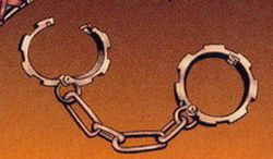 - W Tales of the Jedi 5: The Saga of Nomi Sunrider, Part 3, gdzie przedmiot ten zadebiutował, przy pomocy mandaloriańskich kajdan spętano mistrza Jedi Thona. Jednakże fakt, iż zostały one bez problemu przecięte przez miecz świetlny stoi w opozycji do twierdzeń z późniejszych źródeł, przede wszystkim The History of the Mandalorians, że takowe kajdanki były robione z beskaru.