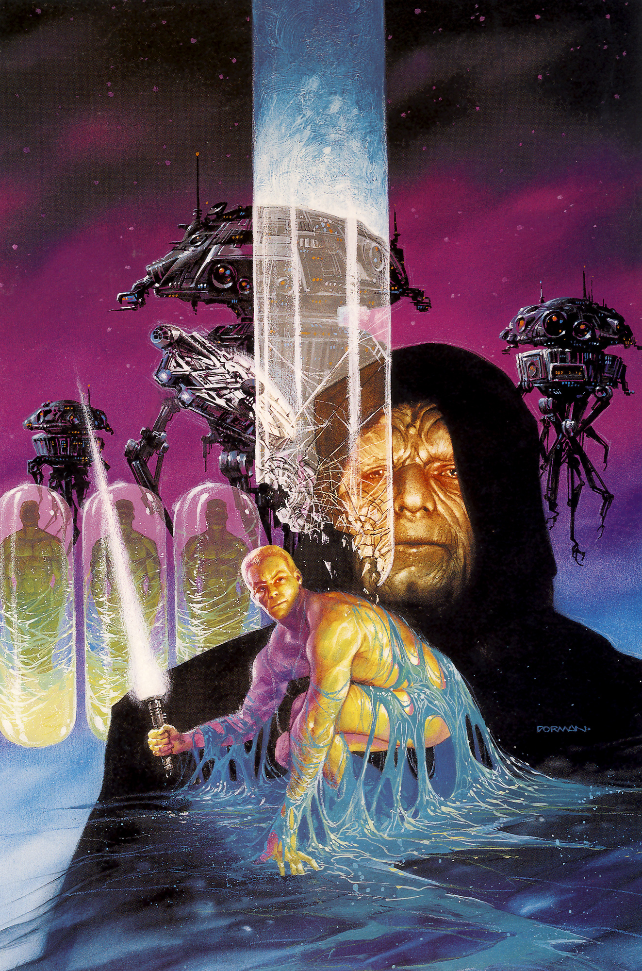 Palpatine jednak nie zginął. Jego świadomość, uwolniona od zagęszczenia Mocy, jakim była druga Gwiazda Śmierci, błąkała się po galaktyce, aż trafiła na Jenga Drogę, Rękę Imperatora i pilota jego osobistego promu, Cienia Imperatora, w którego ciało wszedł i skontaktował się z Satem Pestagem. Pestage przyleciał po swojego pana i zabrał go na Byss, gdzie świadomość Imperatora po raz pierwszy wstąpiła w ciało jego klona.