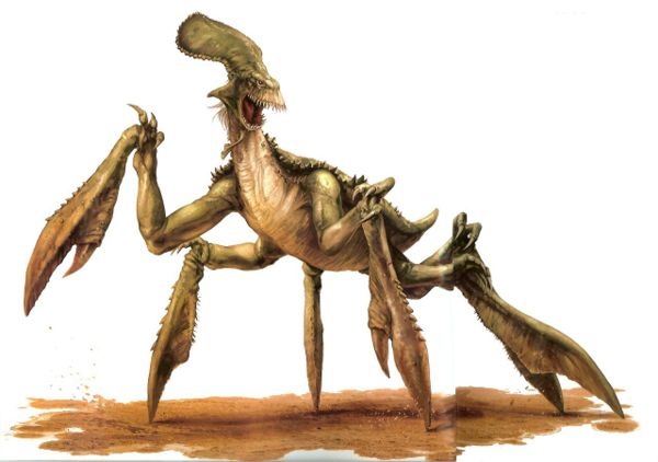 Opis: Acklay. Źródło: The New Essential Guide to Alien Species Autor: Chris Trevas Licencja: Ta grafika jest chroniona prawem autorskim, wykorzystano ją tu dla ilustracji autonomicznego artykułu (lub artykułów), zgodnie z zasadą dozwolonego użytku, na prawie cytatu (Ustawa o prawie autorskim i prawach pokrewnych, art. 29). |