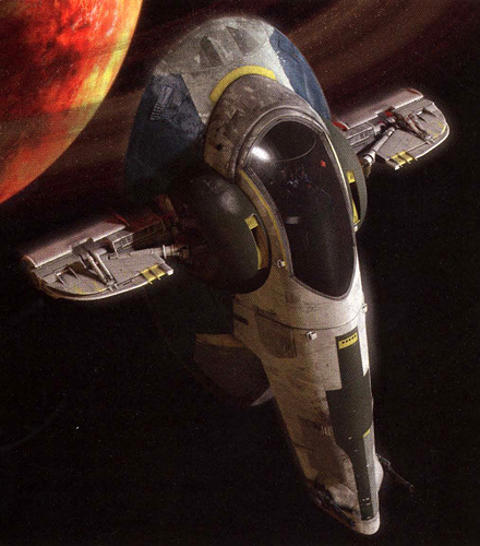 Opis: Patrolowiec typu Firespray-31. Źródło: Starships of the Galaxy (2007) Autor: Nieznany Licencja: Ta grafika jest chroniona prawem autorskim, wykorzystano ją tu dla ilustracji autonomicznego artykułu (lub artykułów), zgodnie z zasadą dozwolonego użytku, na prawie cytatu (Ustawa o prawie autorskim i prawach pokrewnych, art. 29). |
