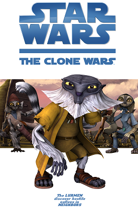 Opis: Okładka komiksu Neighbors. Źródło: StarWars.com Autor: Lucas Animation Licencja: Ta grafika jest chroniona prawem autorskim, wykorzystano ją tu dla ilustracji autonomicznego artykułu (lub artykułów), zgodnie z zasadą dozwolonego użytku, na prawie cytatu (Ustawa o prawie autorskim i prawach pokrewnych, art. 29). |