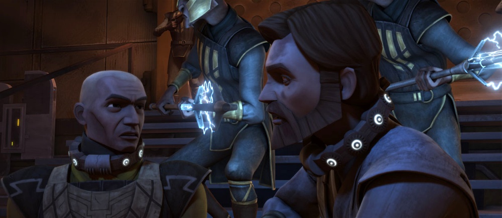 Opis: Obi-Wan Kenobi i Rex na Kadavo. Źródło: Autor: Lucasfilm Animation Licencja: Ta grafika jest chroniona prawem autorskim, wykorzystano ją tu dla ilustracji autonomicznego artykułu (lub artykułów), zgodnie z zasadą dozwolonego użytku, na prawie cytatu (Ustawa o prawie autorskim i prawach pokrewnych, art. 29). |
