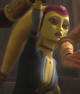 Opis: Niewolnica na Zygerrii. Źródło: Autor: Lucasfilm Animation Licencja: Ta grafika jest chroniona prawem autorskim, wykorzystano ją tu dla ilustracji autonomicznego artykułu (lub artykułów), zgodnie z zasadą dozwolonego użytku, na prawie cytatu (Ustawa o prawie autorskim i prawach pokrewnych, art. 29). |