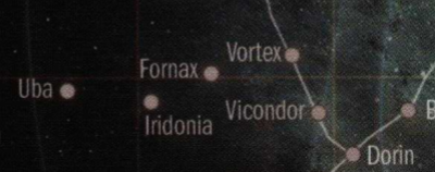 Opis: Uba IV, Fornax, Vortex, Iridonia, Vicondor i Dorin na mapie galaktyki. Źródło: The Force Awakens Beginner Game Autor: Fantasy Flight Games Licencja: Ta grafika jest chroniona prawem autorskim, wykorzystano ją tu dla ilustracji autonomicznego artykułu (lub artykułów), zgodnie z zasadą dozwolonego użytku, na prawie cytatu (Ustawa o prawie autorskim i prawach pokrewnych, art. 29). |