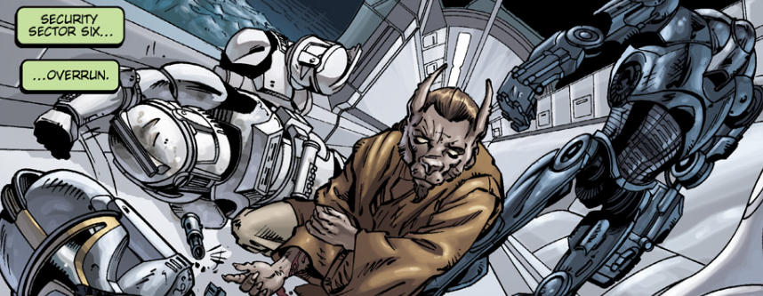 Opis: Sektor Bezpieczeństwa Sześć zajęty podczas bitwy o Kamino. Źródło: Republic 50: The Defense of Kamino Autor: Jan Duursema Licencja: Ta grafika jest chroniona prawem autorskim, wykorzystano ją tu dla ilustracji autonomicznego artykułu (lub artykułów), zgodnie z zasadą dozwolonego użytku, na prawie cytatu (Ustawa o prawie autorskim i prawach pokrewnych, art. 29). |