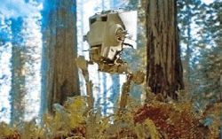 W 4 ABY uczestniczył w walkach na Endorze. Ochraniał bunkier Imperium, a następnie ruszył w las za wrogimi oddziałami. W pewnym momencie Ewoki wypuściły mu pod nogi kłody. Nie mogąc na nich ustać, maszyna przewróciła się, a następnie eksplodowała.
