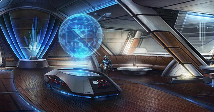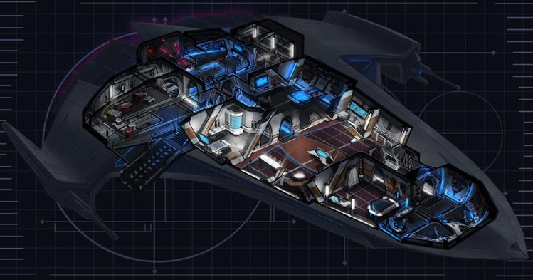 Na pokładzie dość dużego transportowca zbudowano kilkanaście pomieszczeń. Tuż po wejściu na statek napotykało się schody prowadzące na górę. Po lewej stronie mieściła się kajuta użytkowa i dwa pomieszczenia techniczne. W tych pokojach pracowały różnorakie droidy. Na wprost znajdował się korytarz prowadzący wgłąb statku. Obok niego mieściła się nieduża sala konferencyjna, w której mogły odbywać się holorozmowy. Następnie korytarz wchodził w wielki salon, na którego środku znajdował się holowyświetlacz. Po bokach w zagłębieniach ulokowano stoły i kanapy. Po prawej stronie wejścia mieściły się drzwi do centrum medycznego. Był tam zbiornik do kuracji bactą, łóżko i szafki na lekarstwa. Po drugiej stronie salonu biegł kolejny korytarz prowadzący do kokpitu. Po prawej stronie tego przejścia mieściła się kolejna kajuta dla załogi.